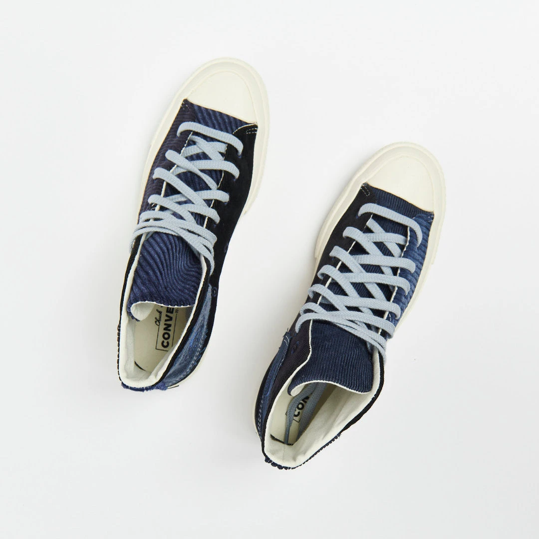 La Converse Chuck 70 Hi en velour côtelé fait partie de la capsule collection « Beyond Retro » pour le printemps 2023.