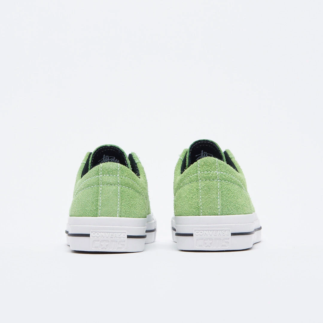 Converse joins forces with the Californian brand Stusssy to offer you this One Star Pro Ox in Sweden with the 8 -Ball logo embroidered in limited series. The Converse X Study One Star Pro OX « Green Flash / White / Black » is part of the winter 2022 collection.