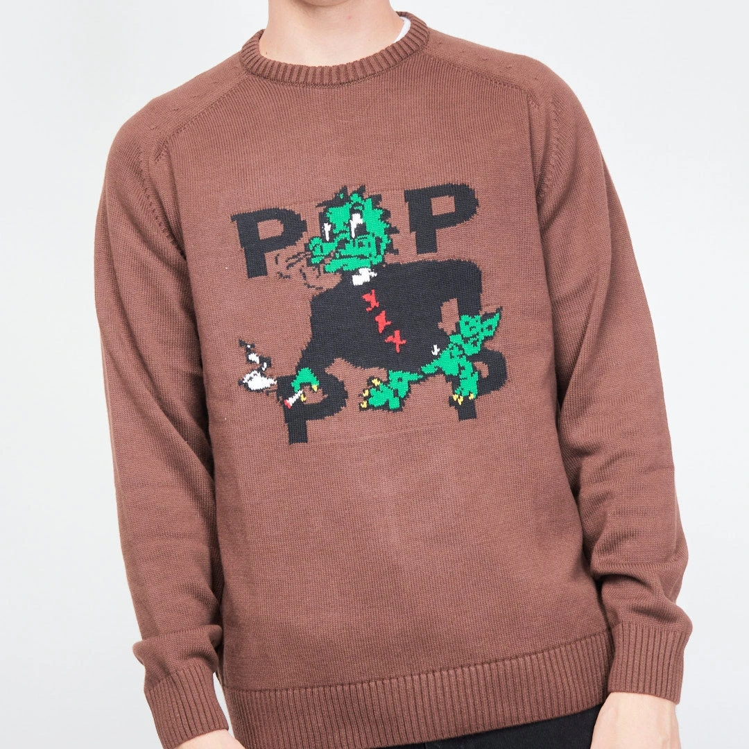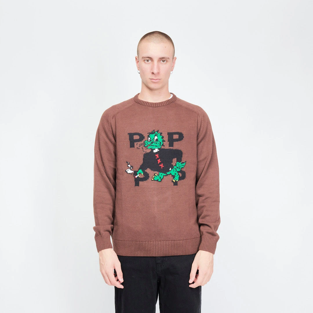 Pop Trading Company – Smoking Dragon Knitted Crewneck (Rain Drum)